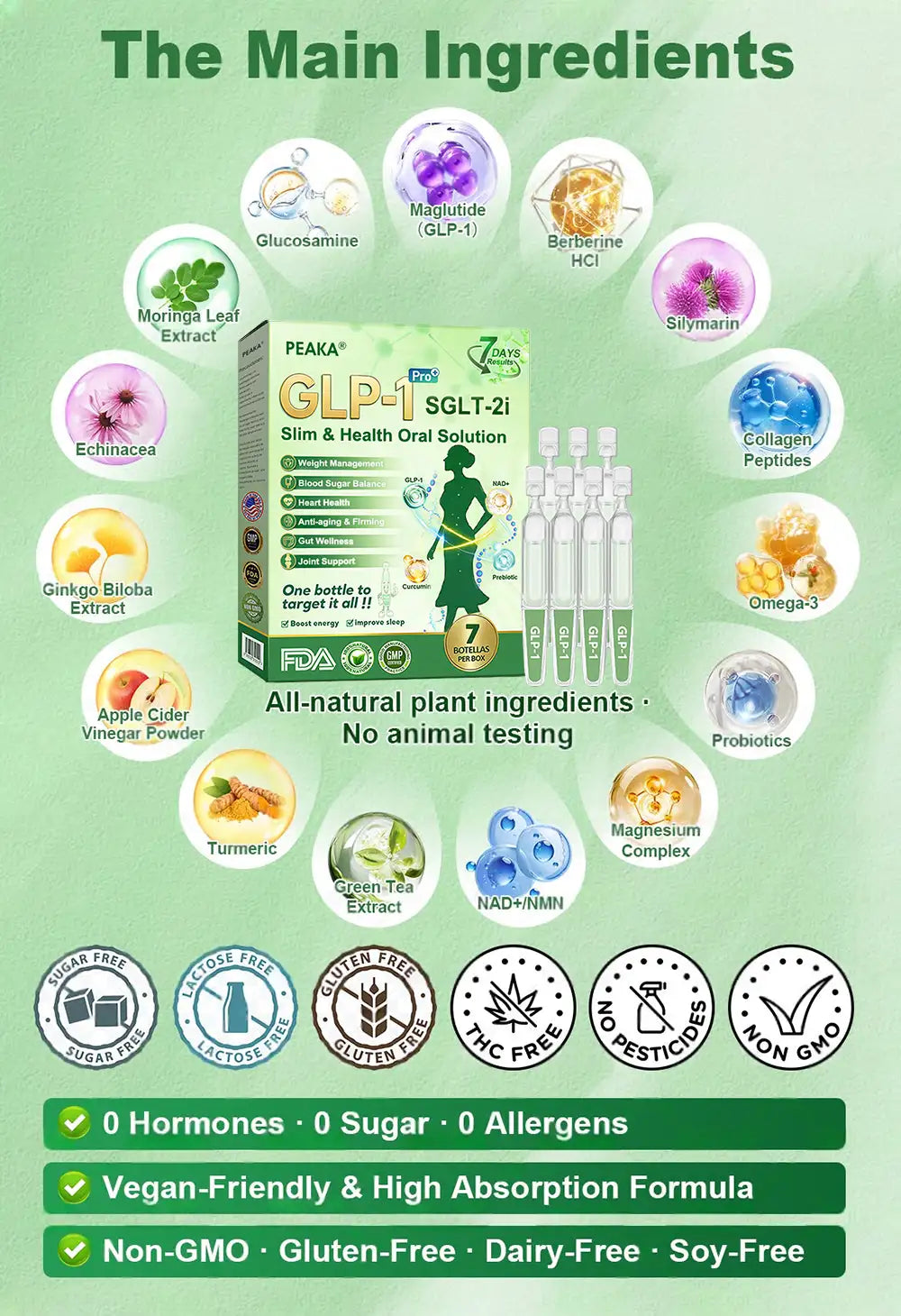 This 100% natural. plant-based formula is scientifically designed to work harmoniously without conflict and canย be safely used alongside other medications or foods.ย It is vegan-friendly and highly absorbable. containingย no hormones. sugar. or allergens.ย and is non-GMO. gluten-free. soy-free. and free from artificial colors. flavors. or preservatives. Once absorbed through the stomach. its active compounds are transported via the bloodstream to targeted organs for precise support. Safe. reliable. cruelty-free. and suitable for all body types. it is clinically tested to deliver visible results in as little asย 7 days.