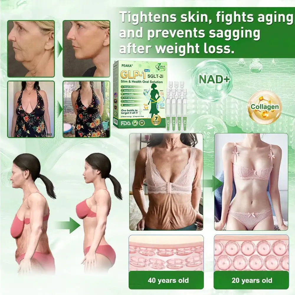 Post-Weight Loss Skin Care: After rapid weight loss. skin often becomes loose. saggy. and less elastic. ๐๐๐๐๐ยฎย has specially addedย Collagen Peptidesย and collagen-boosting factors to the formula. These key ingredients stimulate collagen and elastin synthesis. helping the skin regain firmness and thickness. They also smooth fine lines. reduce sagging. and restore a youthful. healthy glow. This ensures you not only lose weight successfully but also maintain a toned. youthful physiqueโavoiding the problem of โlooking older after slimming down.โย Weight loss and rejuvenation are achieved simultaneously.